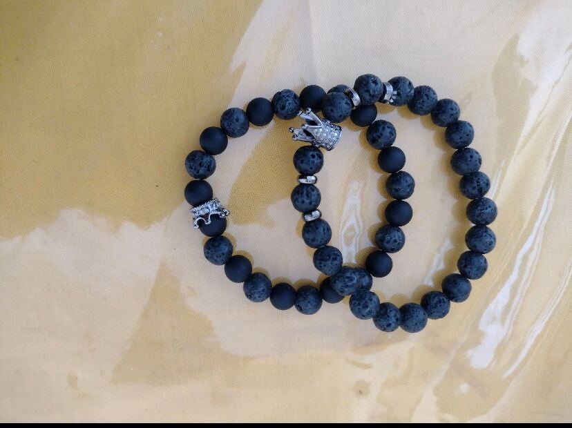PULSERAS DE PAREJA REINA Y REY COLOR NEGRO